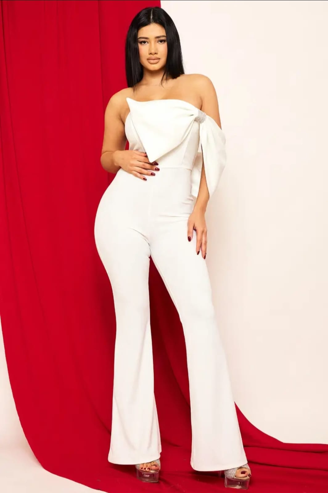 Este palazo sin tirantes con moño al frente y tela adiamantada es perfecto para lucir elegante y a la moda . Su corte campana alargará tus piernas y destacará tu figura. Sin mangas, podrás disfrutar de total libertad de movimientos. ¡Haz que todas las miradas se dirijan hacia ti con este increíble diseño!
