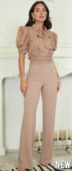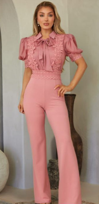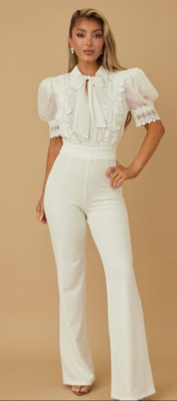 Este elegante palazzo cuenta con hermosas mangas de organza con detalles de encaje, lo que lo hace perfecto para ocasiones especiales. Su diseño exclusivo y femenino te harán destacar en cualquier evento. El tejido de alta calidad te brinda comodidad y estilo a partes iguales.