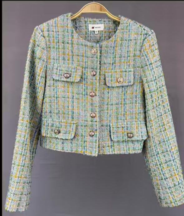 Este saco corto en tono verde pastel destaca por sus elegantes botones dorados que aportan un toque de sofisticación. Diseñado para ofrecer un ajuste cómodo y moderno, es ideal para complementar looks formales o casuales con un estilo fresco y refinado. Perfecto para quienes buscan una prenda versátil que combine tradición y tendencia.